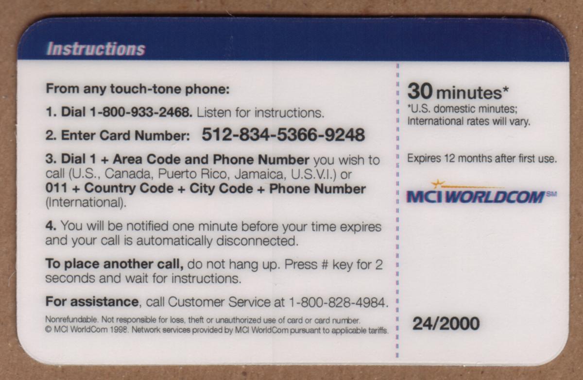 Since we have the world's largest inventory of USA phonecards for collectors, you will not necessarily receive the identical serial/batch/PIN number that we have scanned/pictured.