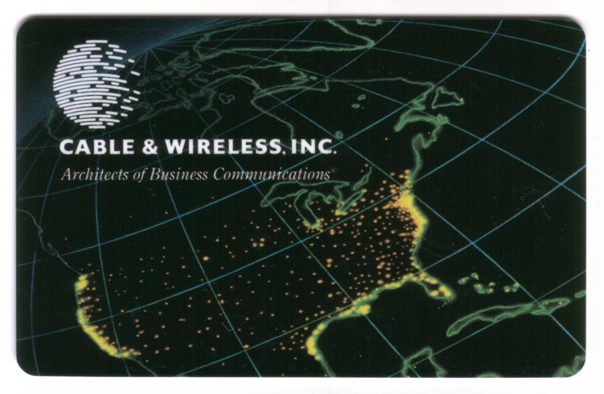 At the upper left corner, there is the logo and name of Cable & Wireless, Inc. Below this, the tagline reads "Architects of Business Communications," indicating the company's involvement in global telecommunications. The card has a clean, professional design centered on the geographic and technological theme of worldwide connectivity.