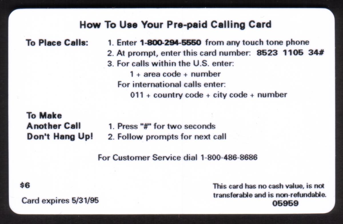 Since we have the world's largest inventory of USA phonecards for collectors, you will not necessarily receive the identical serial/batch/PIN number that we have scanned/pictured.
