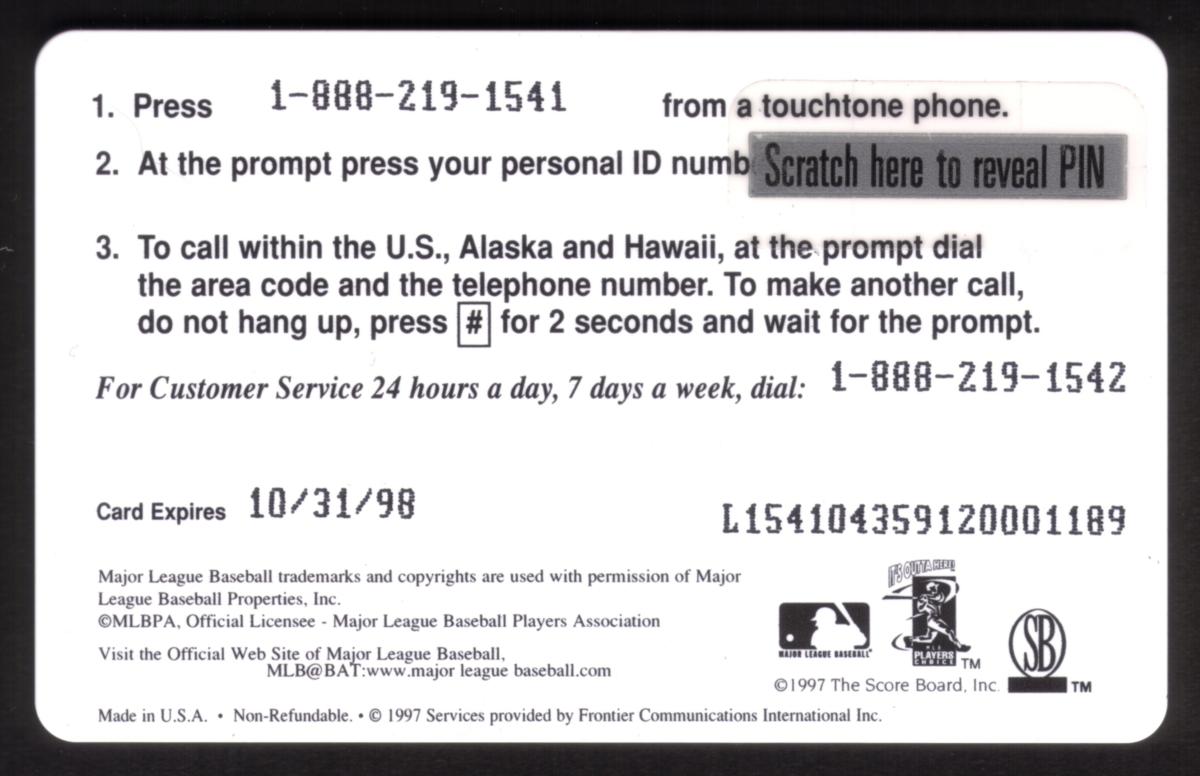 Since we have the world's largest inventory of USA phonecards for collectors, you will not necessarily receive the identical serial/batch/PIN number that we have scanned/pictured.