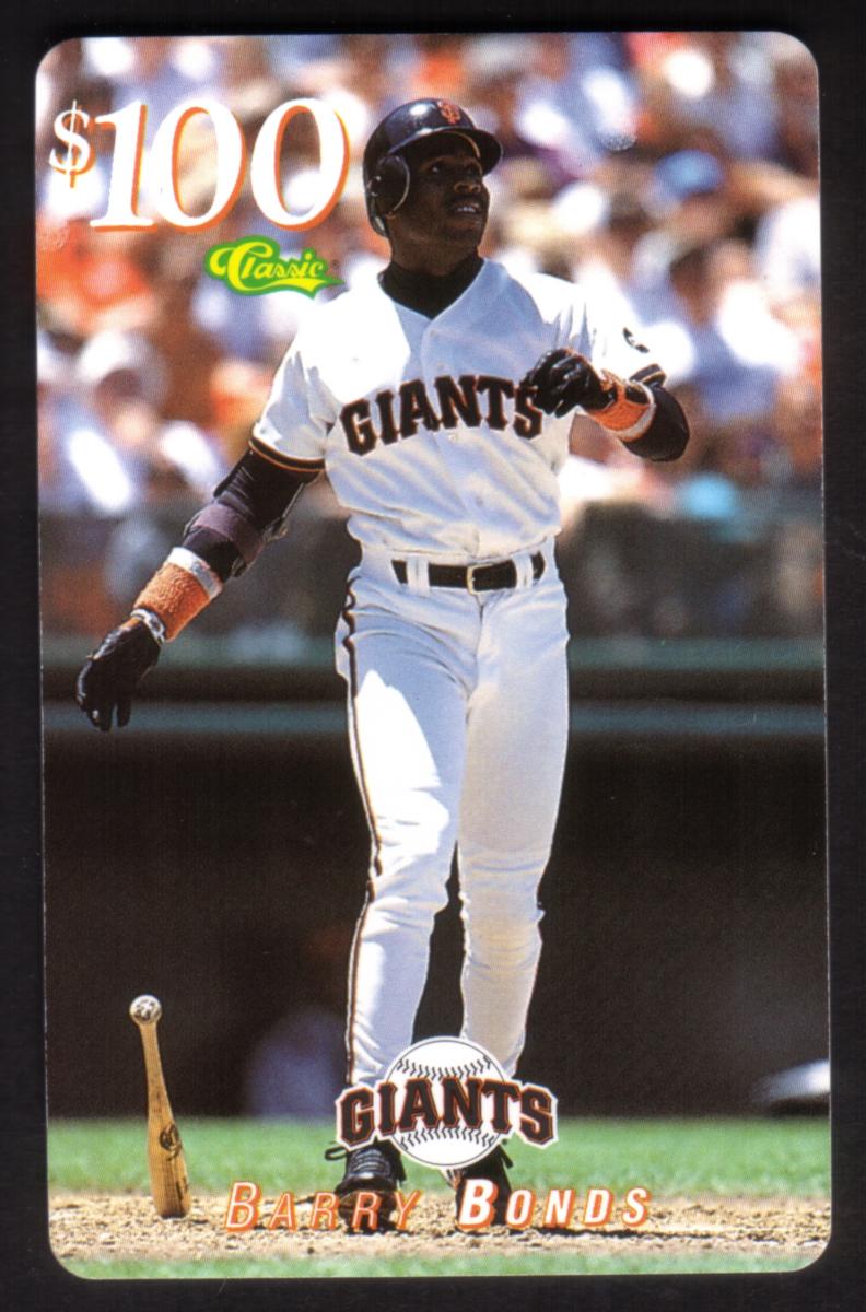 This card is associated with the 1995 Major League Baseball (MLB) Giveaway series. It is a collectible item commemorating Barry Bonds, a prominent MLB player known for his time with the San Francisco Giants. The card visually emphasizes Bonds’ status as a baseball player while incorporating valuable and identifiable MLB and Giants branding.