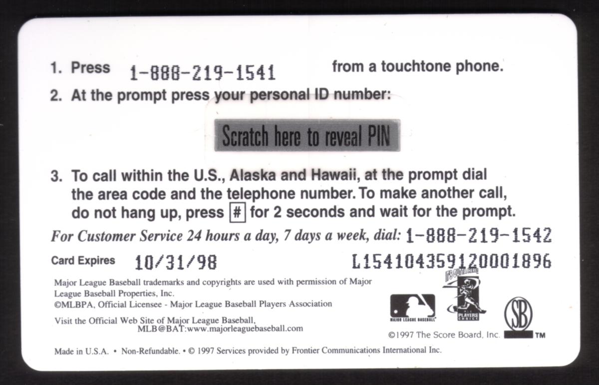 Since we have the world's largest inventory of USA phonecards for collectors, you will not necessarily receive the identical serial/batch/PIN number that we have scanned/pictured.