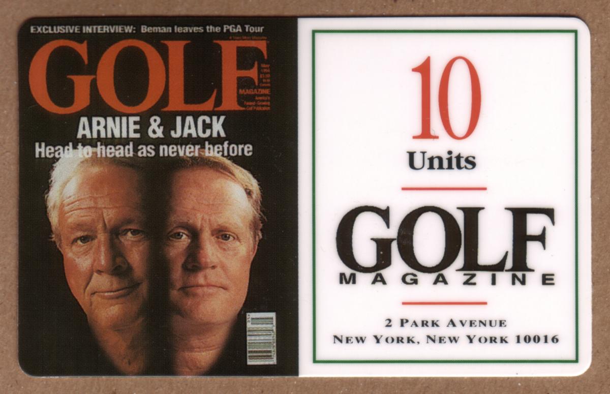 This collectible golf-themed promotional card features prominent images and names of two of the sport’s greatest legends, Arnold Palmer and Jack Nicklaus. The card highlights a head-to-head competition theme between these two iconic golfers, emphasizing the rivalry as “Head to Head as Never Before.” Both Arnold Palmer and Jack Nicklaus are shown clearly, and their names are prominently displayed on the card.