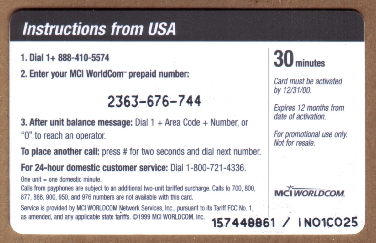Since we have the world's largest inventory of USA phonecards for collectors, you will not necessarily receive the identical serial/batch/PIN number that we have scanned/pictured.