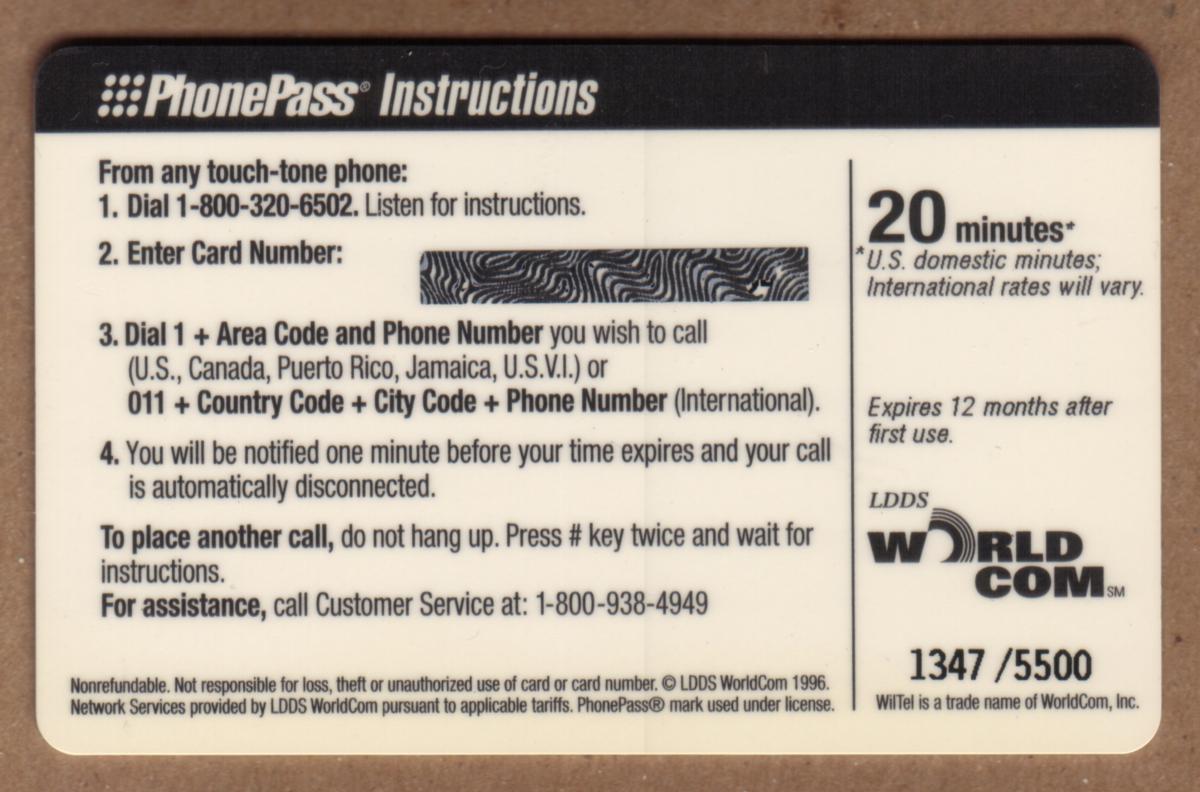 Since we have the world's largest inventory of USA phonecards for collectors, you will not necessarily receive the identical serial/batch/PIN number that we have scanned/pictured.