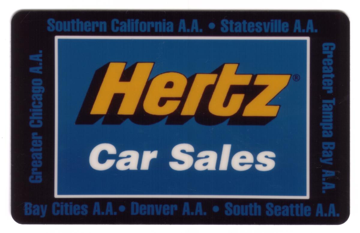 The overall design is clean and straightforward, emphasizing Hertz Car Sales and highlighting the regional Automobile Associations associated with this promotional card.