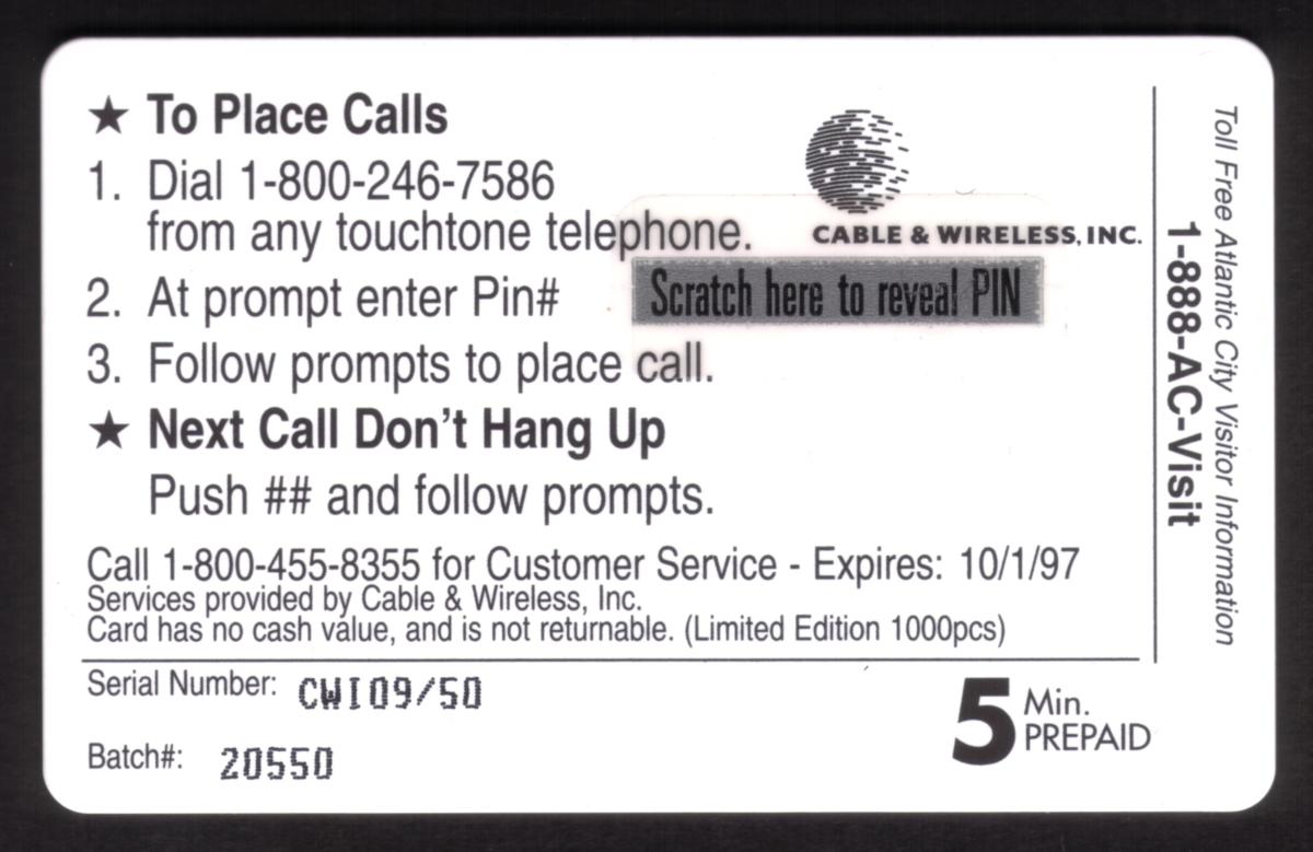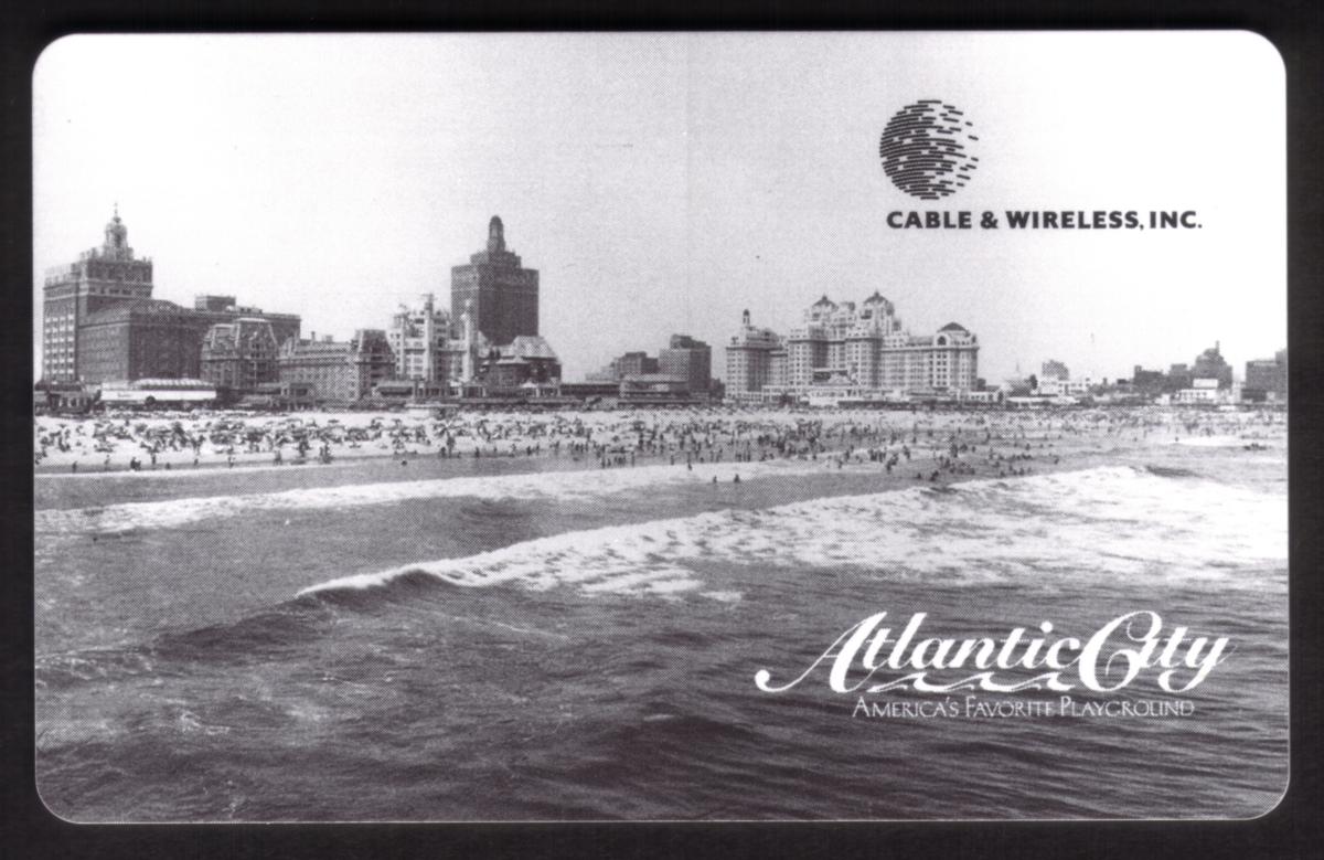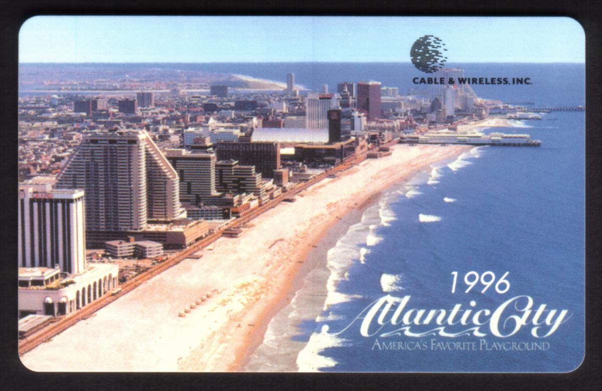 These phone cards celebrate Atlantic City and New Jersey beaches, featuring promotional branding from the 1996 Atlantic City Convention & Visitors Authority. They are official collectible items connected to Cable & Wireless, capturing a moment of tourism promotion in New Jersey during that time.