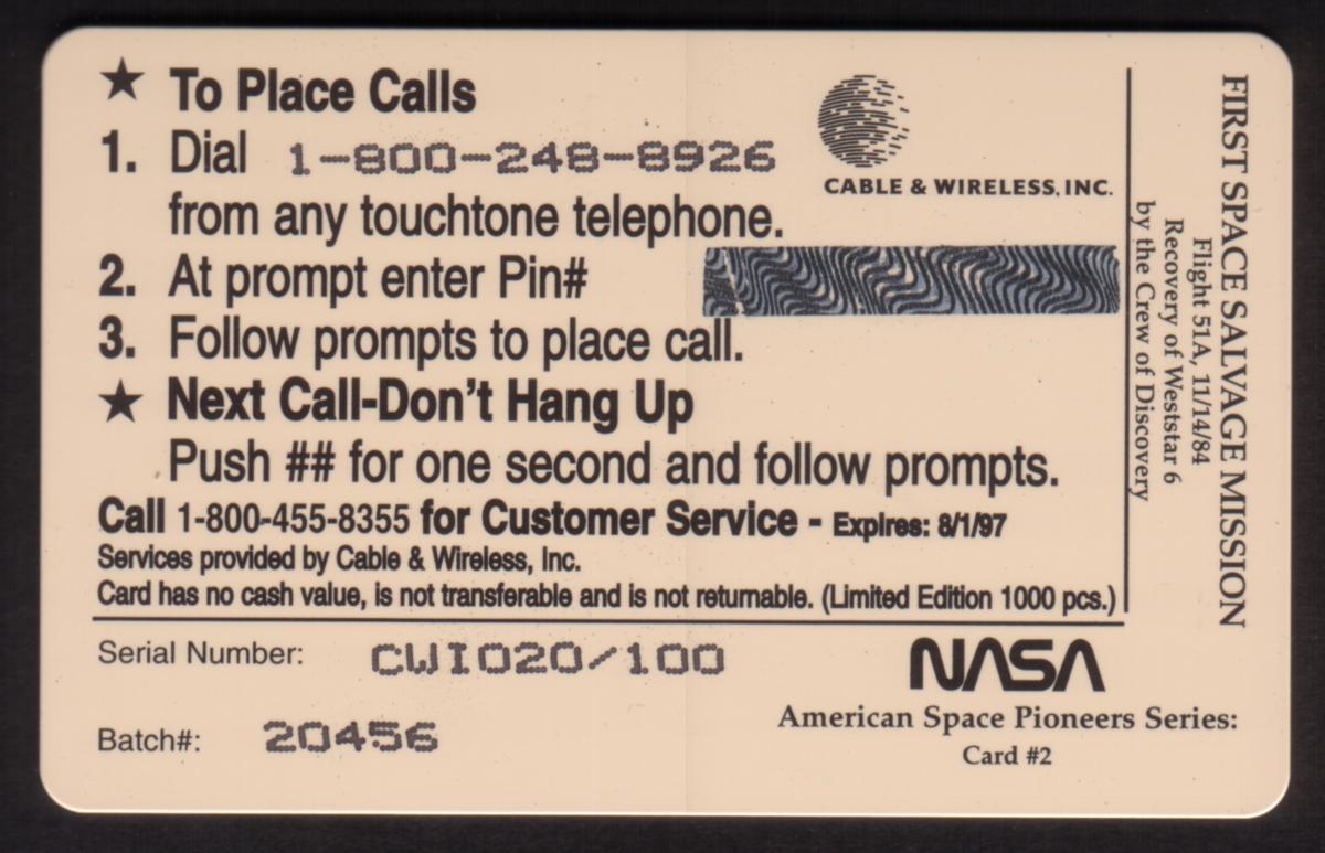 Since we have the world's largest inventory of USA phonecards for collectors, you will not necessarily receive the identical serial/batch/PIN number that we have scanned/pictured.