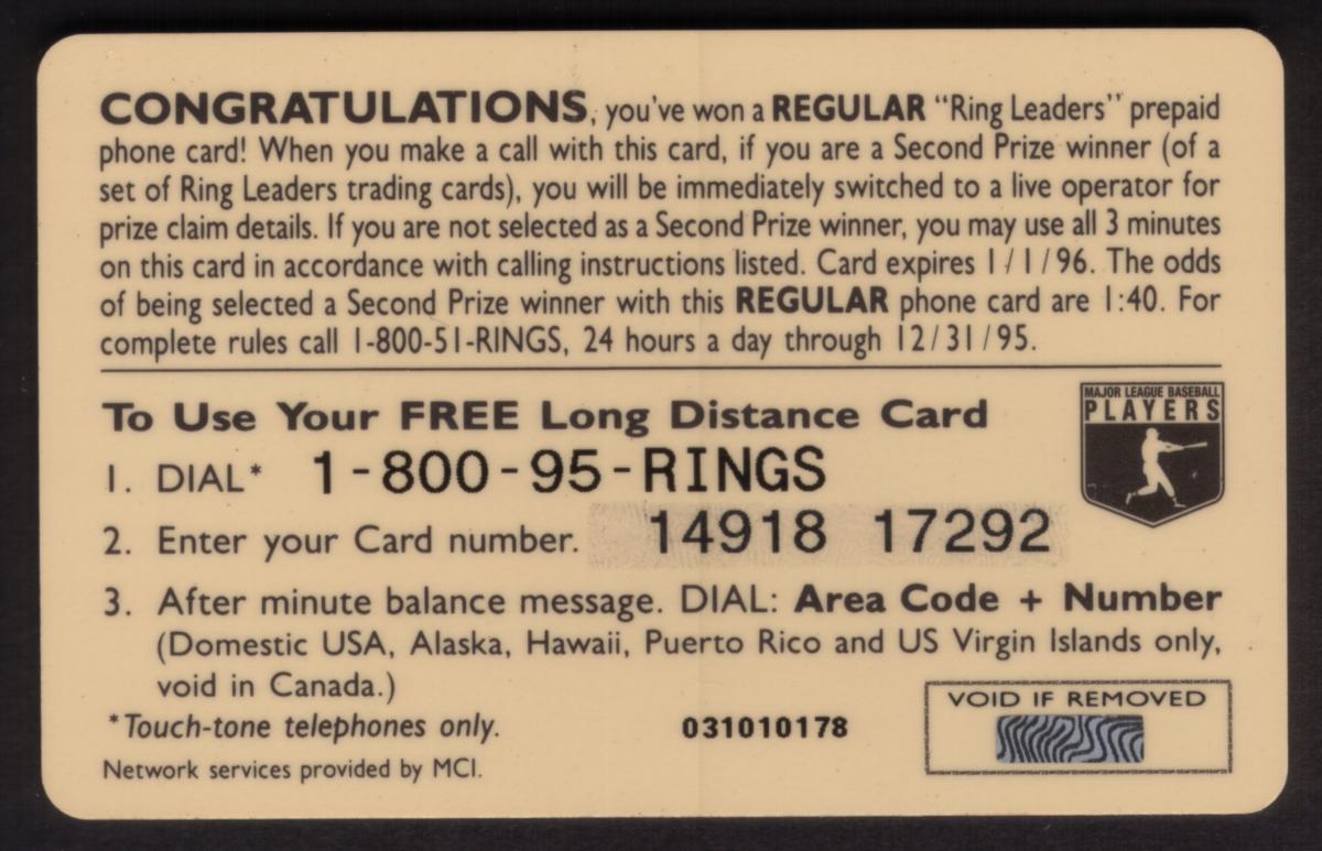 Since we have the world's largest inventory of USA phonecards for collectors, you will not necessarily receive the identical serial/batch/PIN number that we have scanned/pictured.