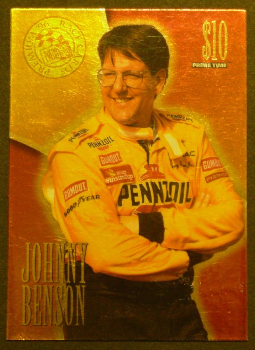 This card is part of a limited-edition set, making it a sought-after item for fans of Johnny Benson and NASCAR. Its detailed branding and racing elements celebrate the competitive spirit of 1990s stock car racing.