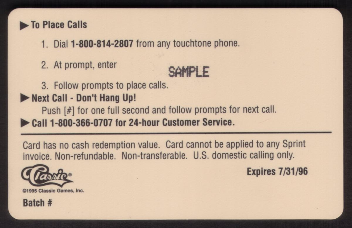 Since we have the world's largest inventory of USA phonecards for collectors, you will not necessarily receive the identical serial/batch/PIN number that we have scanned/pictured.