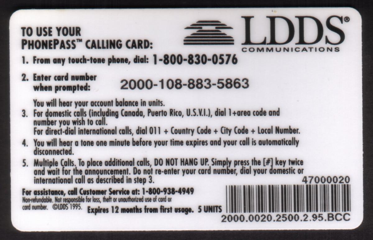 Since we have the world's largest inventory of USA phonecards for collectors, you will not necessarily receive the identical serial/batch/PIN number that we have scanned/pictured.