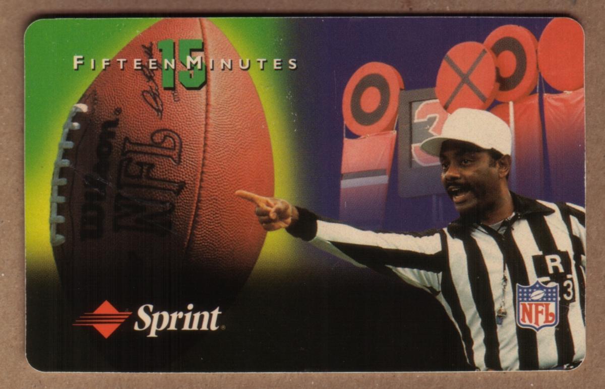 This card is intended as a collectible related to NFL football and officiating, merging the sport’s iconography with telecommunications branding. The presence of the specific text and imagery directly connects it to the NFL and Sprint without additional individuals or locations named.