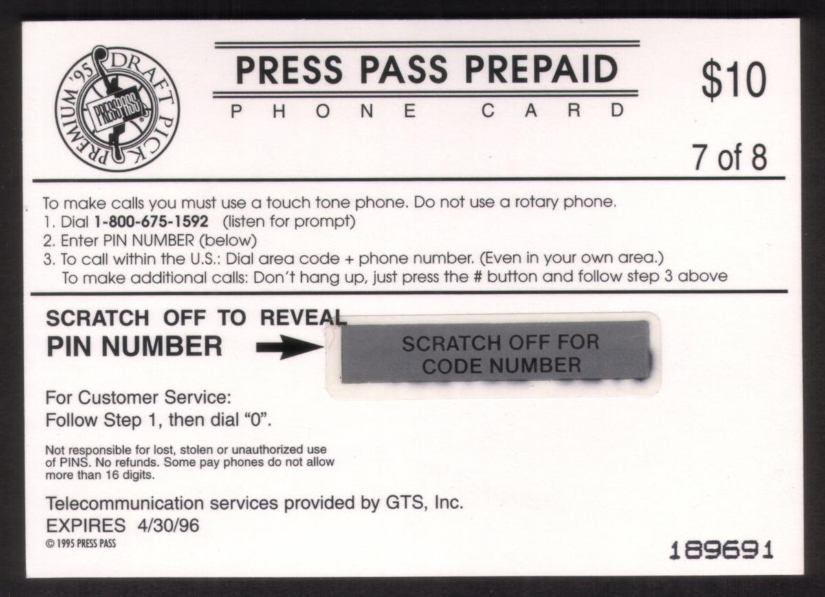 Since we have the world's largest inventory of USA phonecards for collectors, you will not necessarily receive the identical serial/batch/PIN number that we have scanned/pictured.