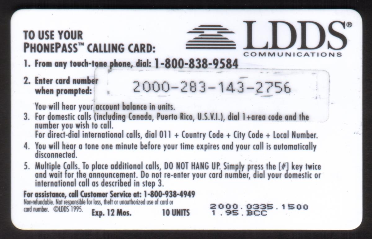 Since we have the world's largest inventory of USA phonecards for collectors, you will not necessarily receive the identical serial/batch/PIN number that we have scanned/pictured.