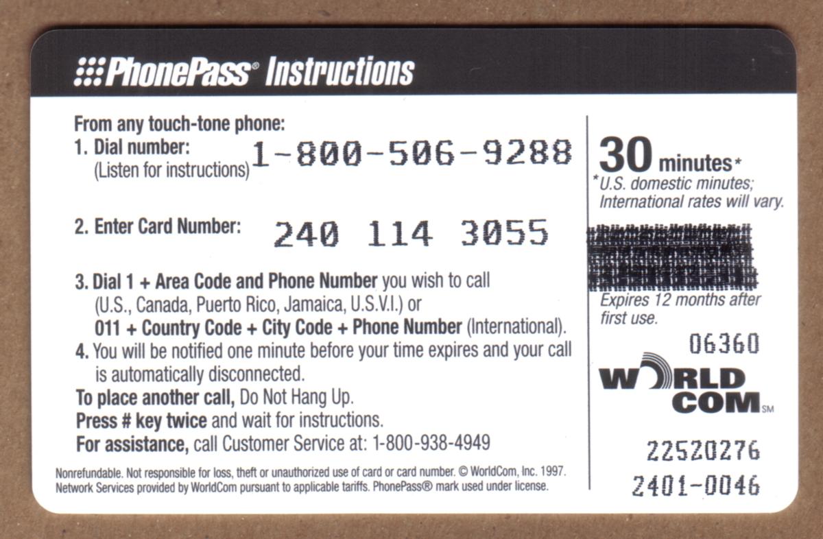 Since we have the world's largest inventory of USA phonecards for collectors, you will not necessarily receive the identical serial/batch/PIN number that we have scanned/pictured.