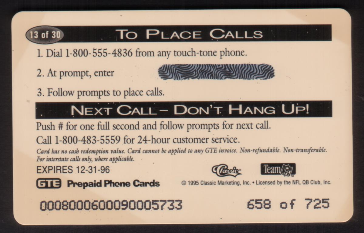 Since we have the world's largest inventory of USA phonecards for collectors, you will not necessarily receive the identical serial/batch/PIN number that we have scanned/pictured.