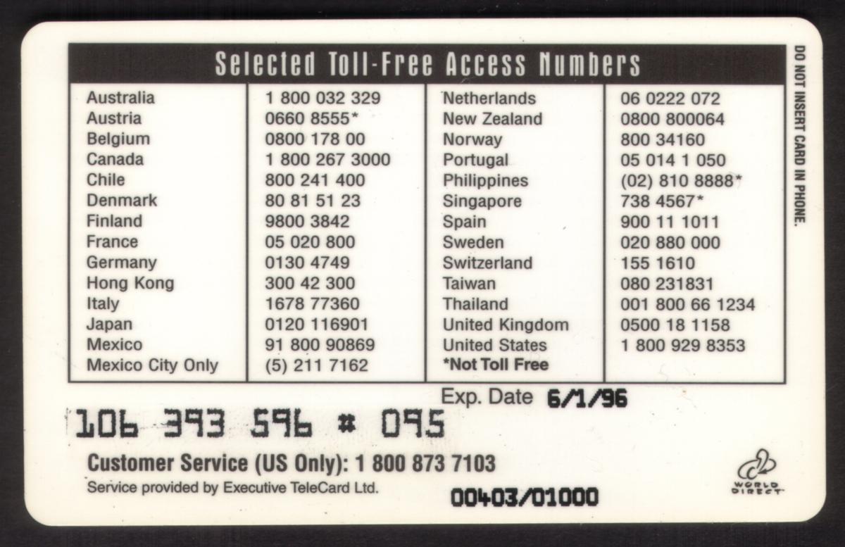 Since we have the world's largest inventory of USA phonecards for collectors, you will not necessarily receive the identical serial/batch/PIN number that we have scanned/pictured.