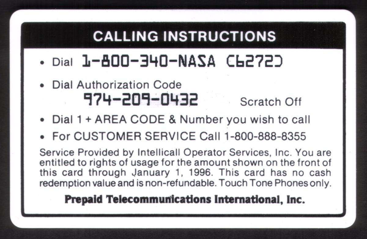 This prepaid telecom international collectible card visually represents aspects of space exploration, NASA scientific research, and aeronautics, connecting with the Kennedy Space Center and outer space themes.