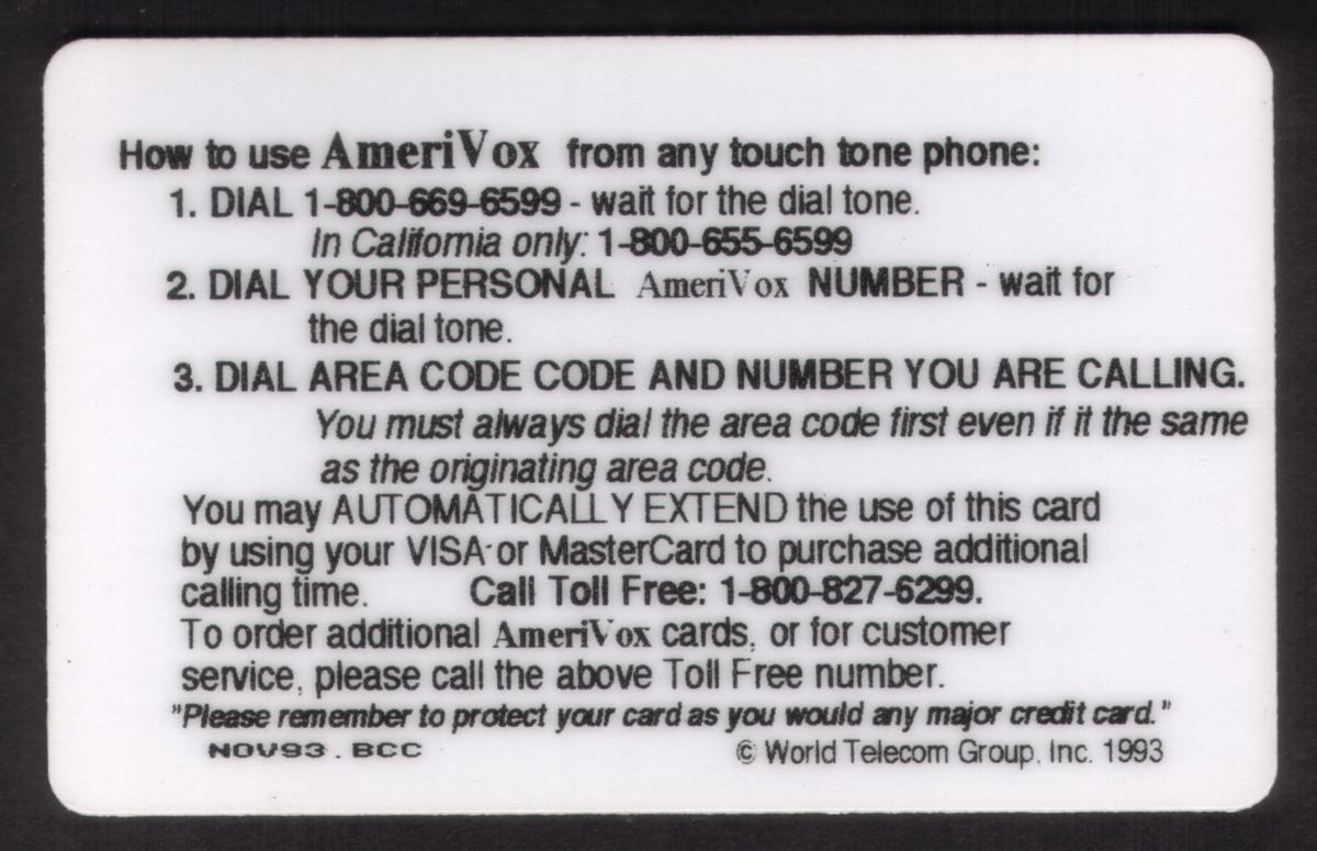 This card was released in November 1993 and represents the collaboration of Thirteen WNET with AmeriVox for telephone debit services. It reflects Thirteen WNET's commitment to innovative communication solutions for local, national, and international audiences, supporting its reputation as a pioneer in educational programming and broadcast media.