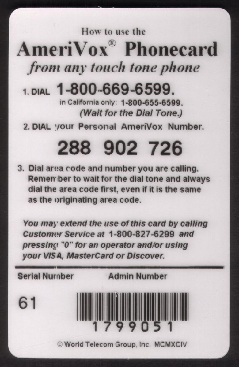 Since we have the world's largest inventory of USA phonecards for collectors, you will not necessarily receive the identical serial/batch/PIN number that we have scanned/pictured.