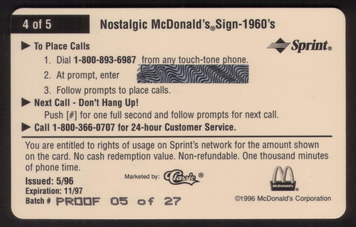 Since we have the world's largest inventory of USA phonecards for collectors, you will not necessarily receive the identical serial/batch/PIN number that we have scanned/pictured.