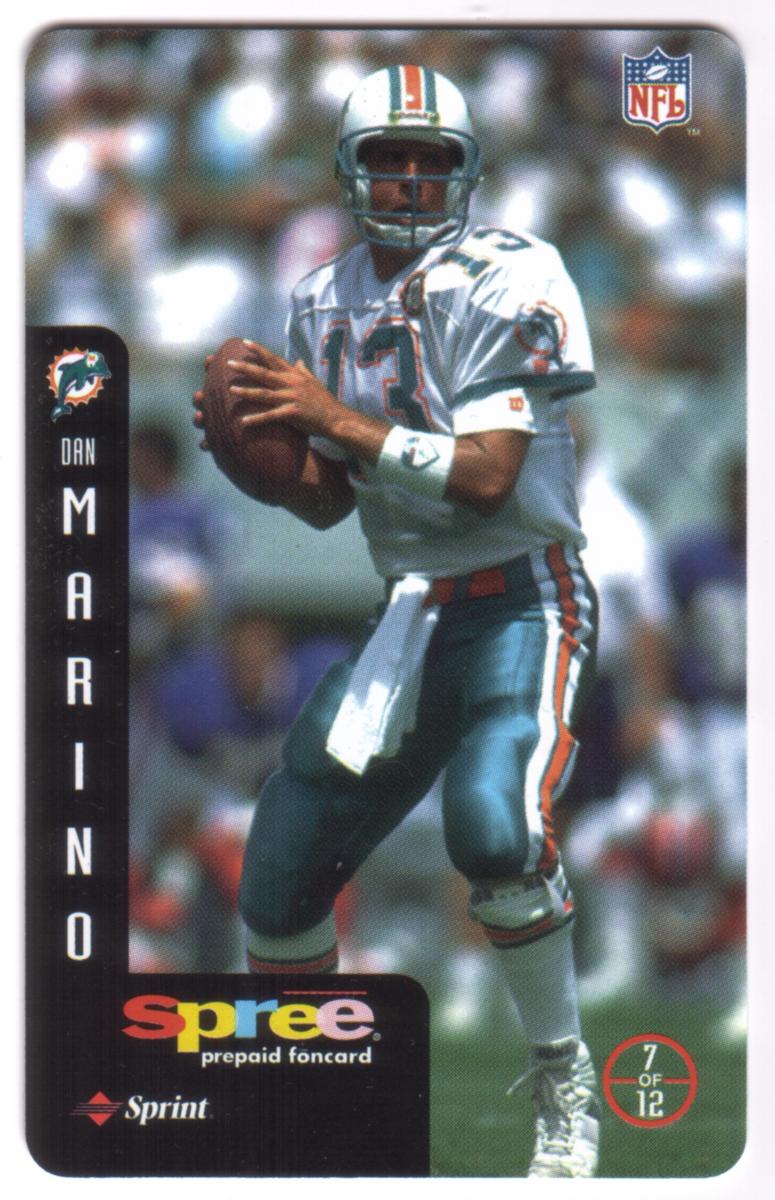 Overall, this Sprint prepaid foncard is a collectible piece celebrating Dan Marino’s role as a Miami Dolphins quarterback in professional football, combining sports imagery and telecommunications branding.