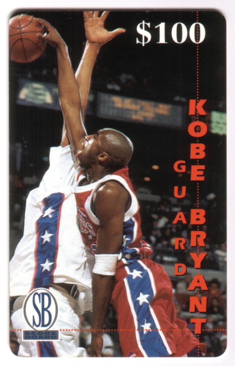 This card is associated with professional basketball, highlighting Kobe Bryant’s early career as a guard in the NBA. The vibrant in-game imagery, official branding, and clear player identification reflect its value as a sports memorabilia piece dedicated to one of basketball’s iconic figures.