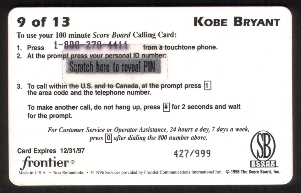 Since we have the world's largest inventory of USA phonecards for collectors, you will not necessarily receive the identical serial/batch/PIN number that we have scanned/pictured.