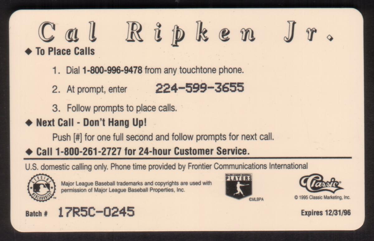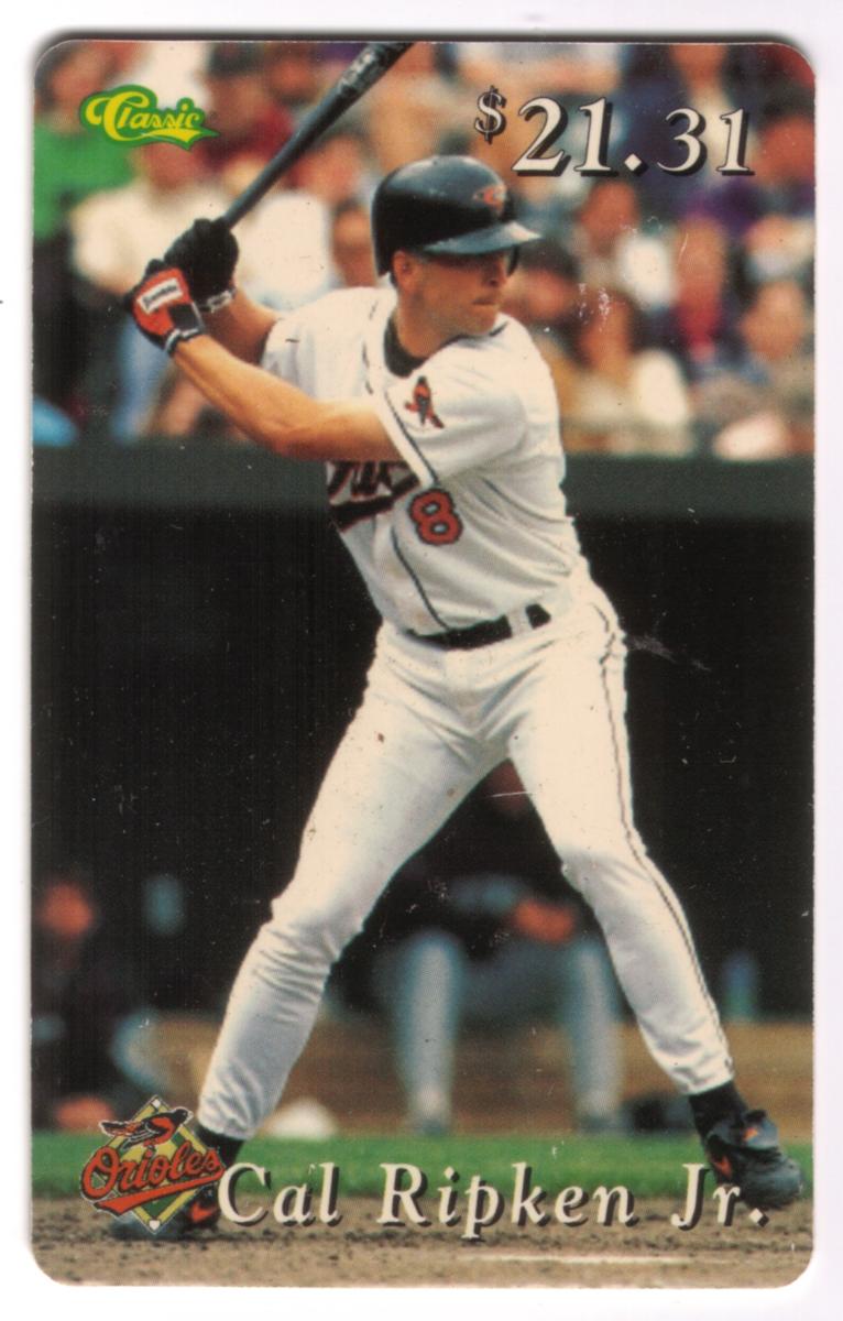 The card is marked with a value of $21.31 at the top right corner and includes the Baltimore Orioles logo in the lower left corner. The Classic brand logo appears in the upper left corner, indicating the card’s manufacturer. The bottom of the card clearly displays the name "Cal Ripken Jr." in a serif font.