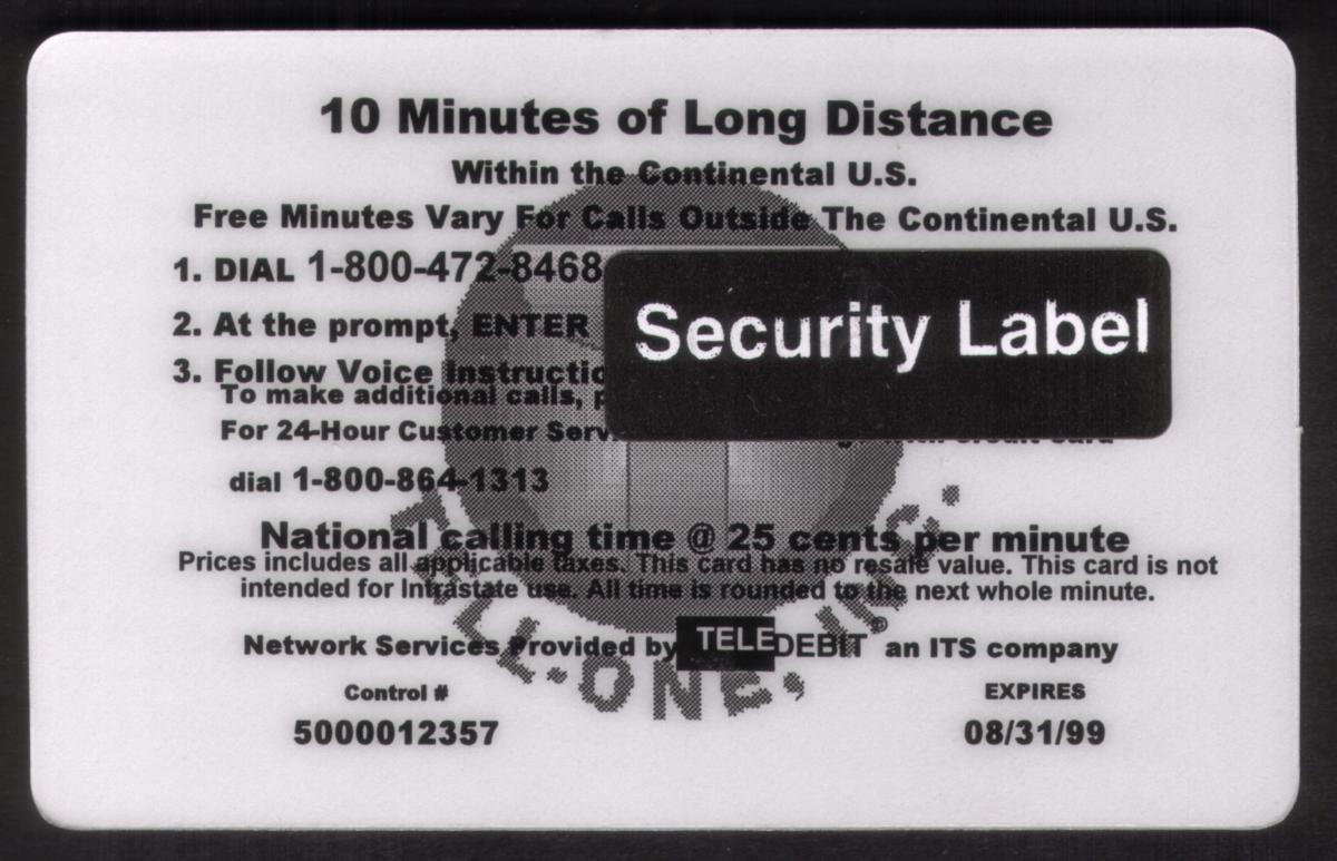 Since we have the world's largest inventory of USA phonecards for collectors, you will not necessarily receive the identical serial/batch/PIN number that we have scanned/pictured.