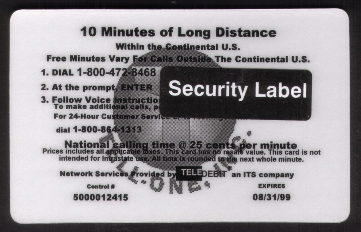 Since we have the world's largest inventory of USA phonecards for collectors, you will not necessarily receive the identical serial/batch/PIN number that we have scanned/pictured.