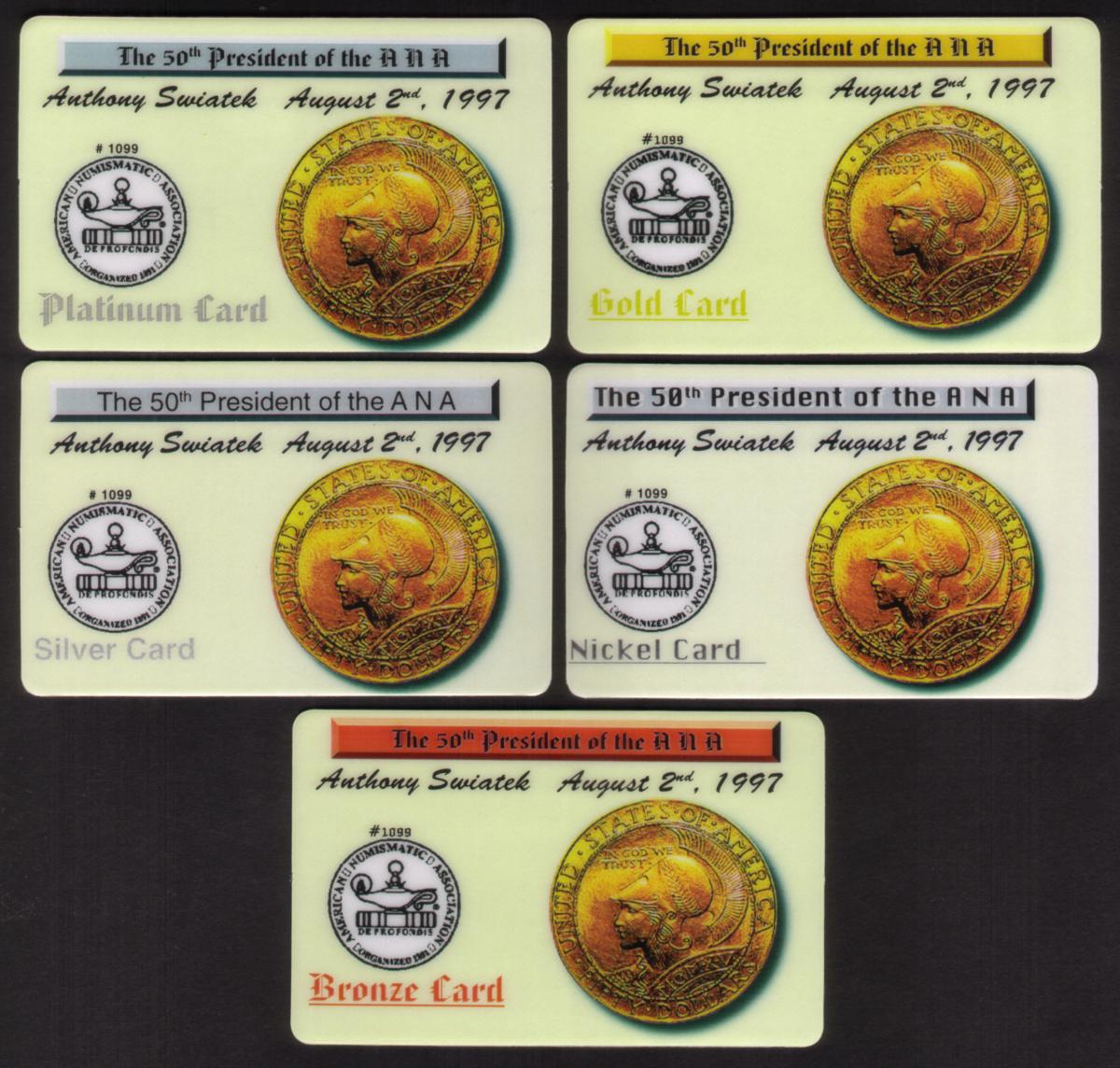 Anthony Swiatek, ANA Bronze/Nickel/Silver/Gold/Plat. Set of 5 SAMPLES