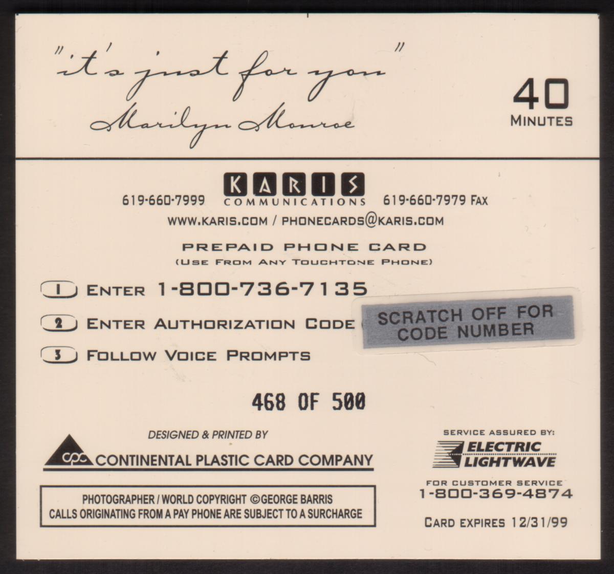 Since we have the world's largest inventory of USA phonecards for collectors, you will not necessarily receive the identical serial/batch/PIN number that we have scanned/pictured.