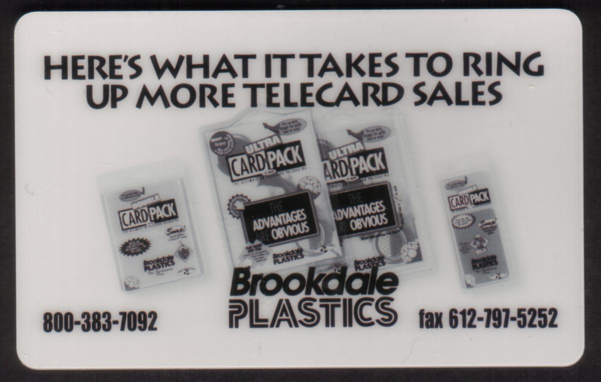 The card is associated with Brooksdale Plastics, a company noted for promotional phone card products, and it references Direct Link Telecomm, suggesting a telecommunications service partnership. The card also mentions the Hyatt Orlando Florida, pinpointing the location connected to the event or promotion. It is designed to support exhibitions and expos, with the purpose of boosting telecard sales at related events.