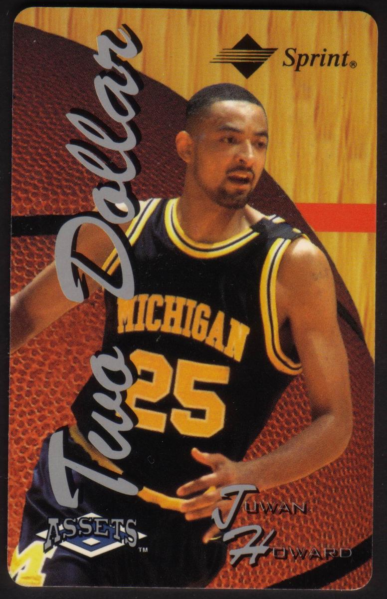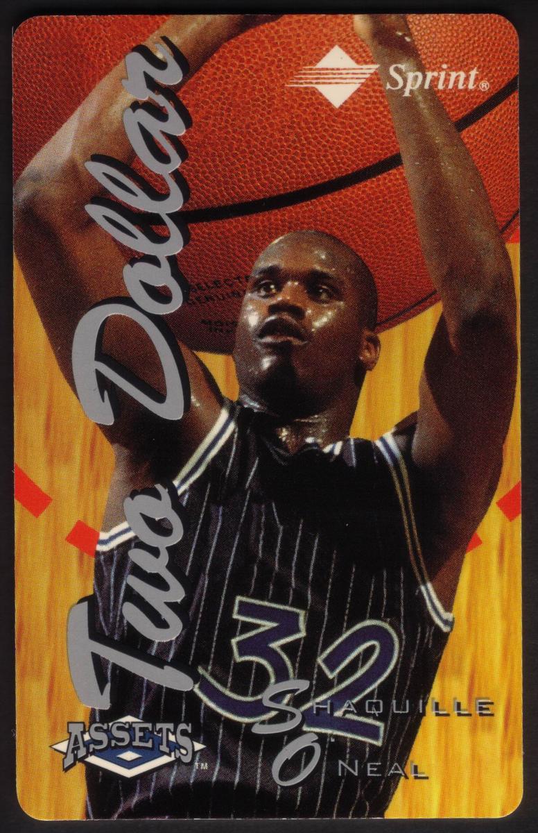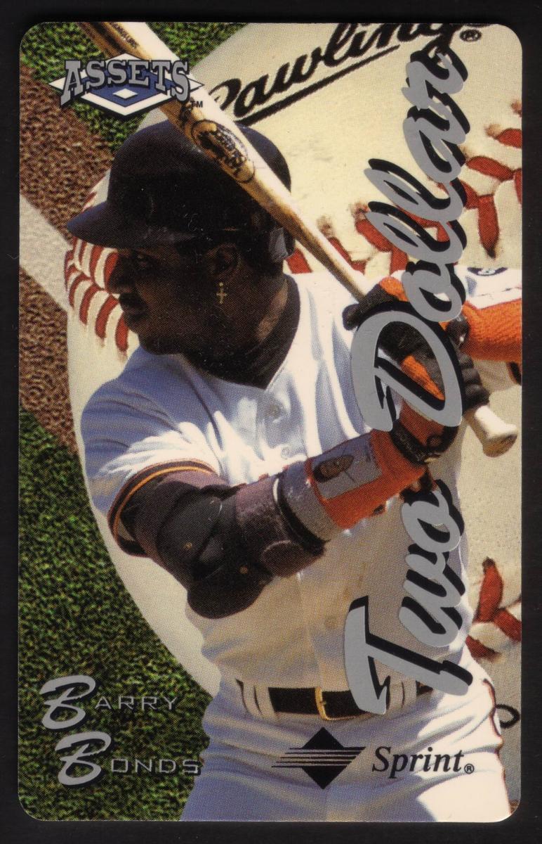 These collectible cards are from The Score Board Inc.'s Assets Series #2 (1995), Complete Set of 24, issued on 03/31/96. Each card features a different professional athlete or sports figure from a variety of sports including basketball, baseball, football, hockey, and auto racing. The cards are branded with the Sprint logo and include the denomination "Two Dollar" prominently displayed in silver script along the left side. The "ASSETS" logo is also present on each card.