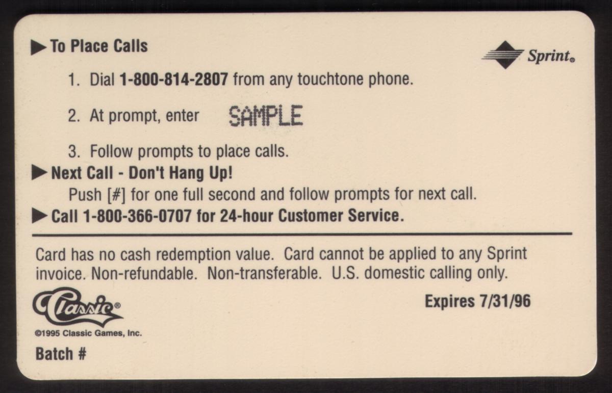 Since we have the world's largest inventory of USA phonecards for collectors, you will not necessarily receive the identical serial/batch/PIN number that we have scanned/pictured.