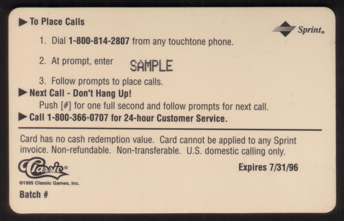 Since we have the world's largest inventory of USA phonecards for collectors, you will not necessarily receive the identical serial/batch/PIN number that we have scanned/pictured.