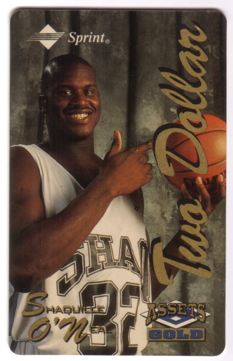 The card has several logos and text elements. The Sprint logo and name appear in the upper left corner. Along the right side of the card, the name "Tayo Dallar" is prominently displayed in large gold script. Near the bottom, the text "Shaquille O’Neal" is printed in gold and black, with emphasis on "Shaquille" and "O’Neal." Below that, the words "Assets Gold" are shown inside a small emblem incorporating a basketball and blue and gold colors.