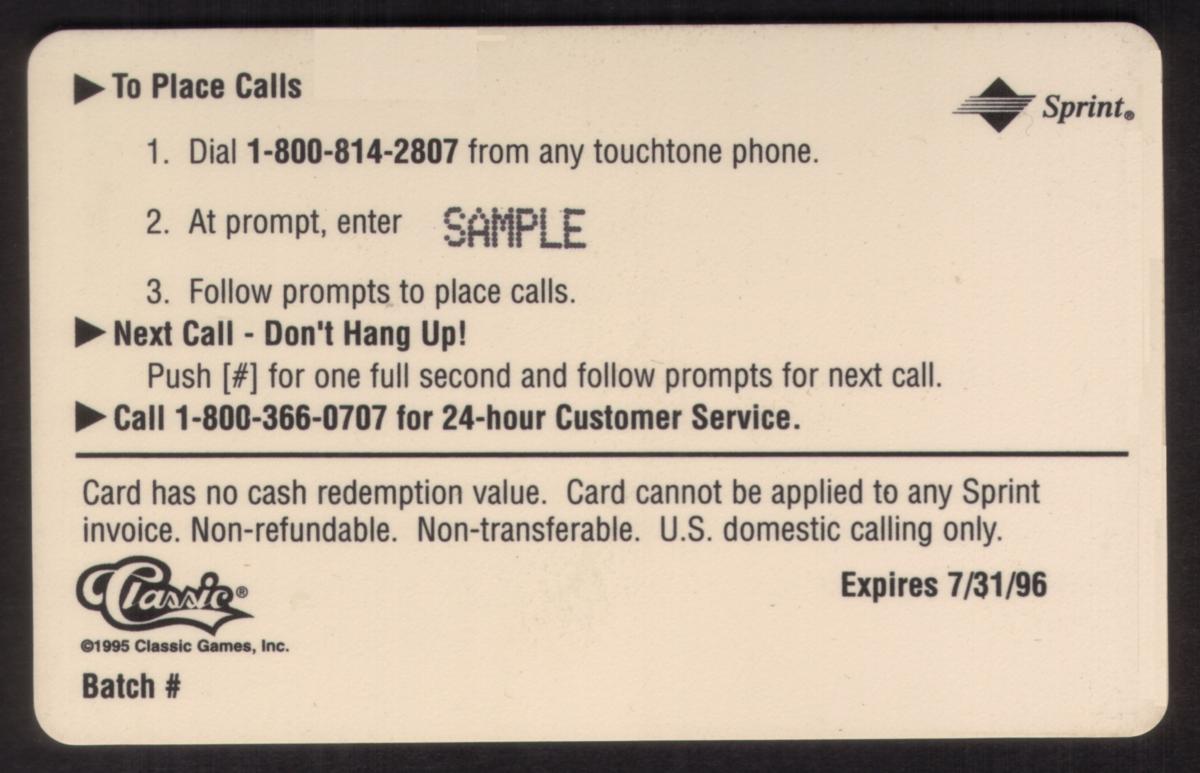 Since we have the world's largest inventory of USA phonecards for collectors, you will not necessarily receive the identical serial/batch/PIN number that we have scanned/pictured.