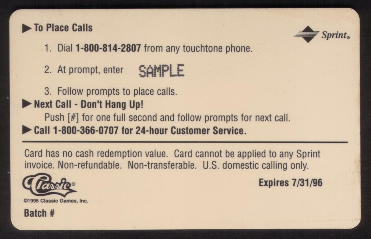 Since we have the world's largest inventory of USA phonecards for collectors, you will not necessarily receive the identical serial/batch/PIN number that we have scanned/pictured.