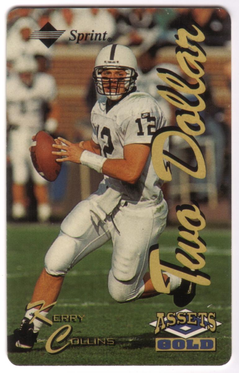 The card highlights "Two Dollar" in gold script running vertically along the right side. At the top left corner, the Sprint logo is clearly visible, associating the card with the Sprint brand. At the bottom left, Kerry Collins' name is printed in gold lettering with a stylish font that emphasizes his first and last names separately but cohesively.
