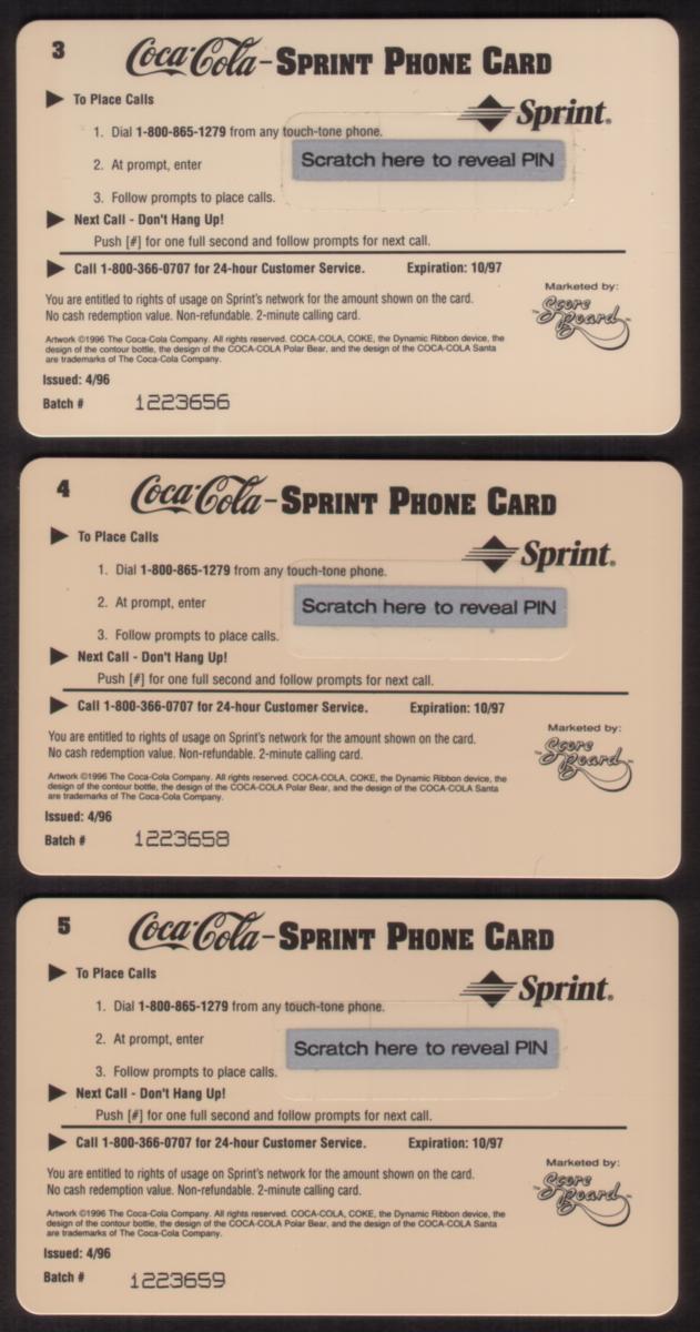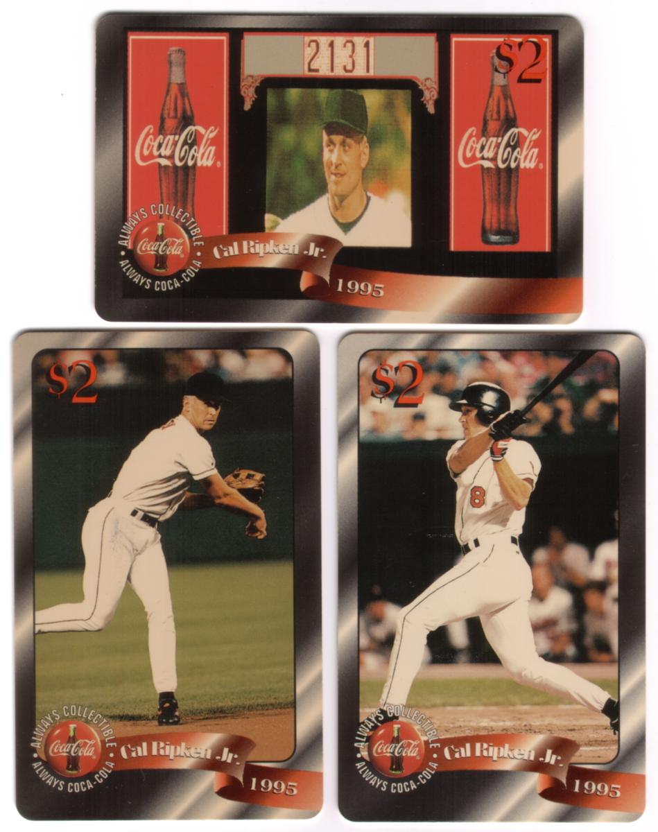 | Coca-Cola '96 $2. Cal Ripken - 3 Diff 1995 Coke Cards #3-5 of 48 |