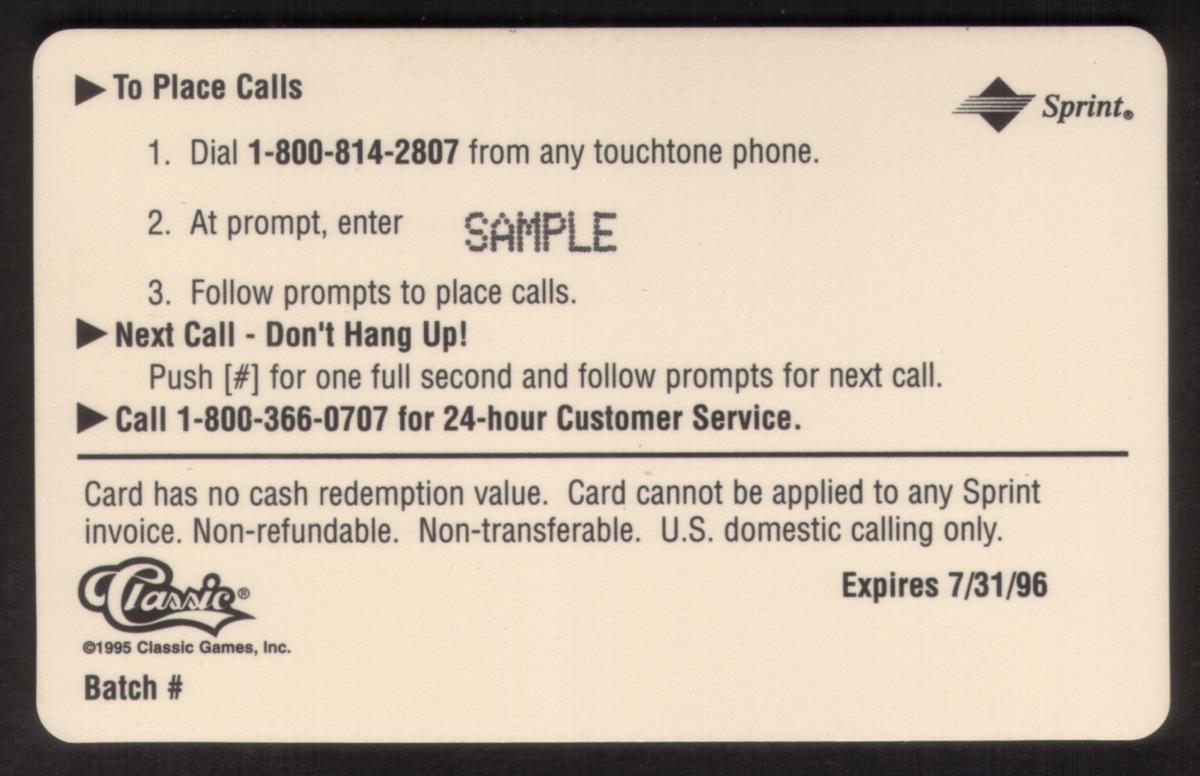 Since we have the world's largest inventory of USA phonecards for collectors, you will not necessarily receive the identical serial/batch/PIN number that we have scanned/pictured.