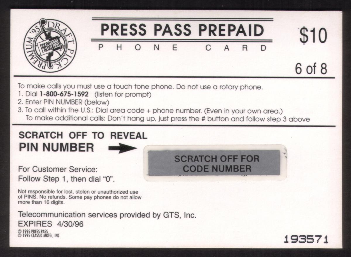 Since we have the world's largest inventory of USA phonecards for collectors, you will not necessarily receive the identical serial/batch/PIN number that we have scanned/pictured.
