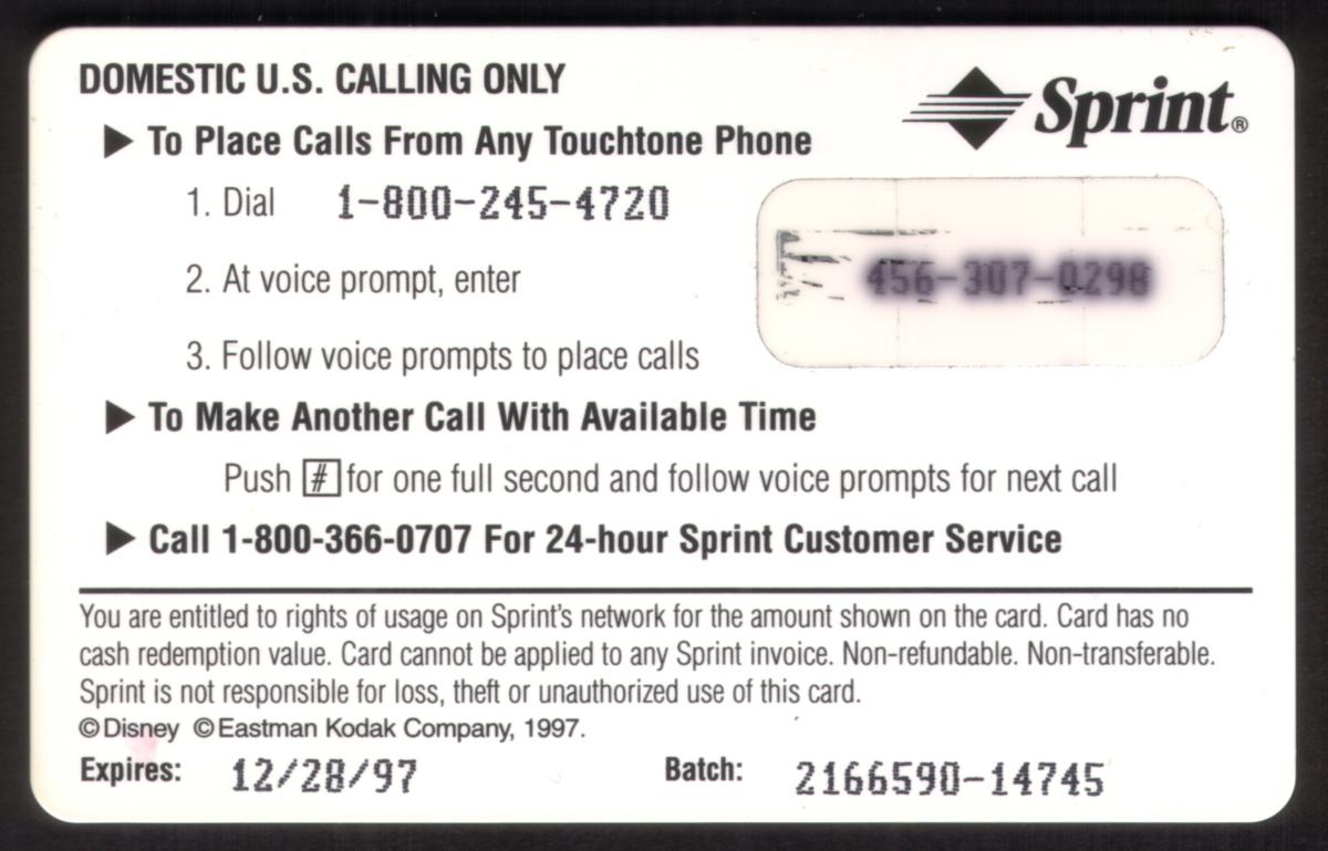 Since we have the world's largest inventory of USA phonecards for collectors, you will not necessarily receive the identical serial/batch/PIN number that we have scanned/pictured.