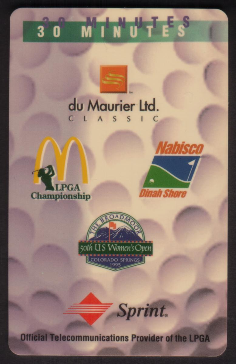 Sprint is featured as the official telecommunications provider of the LPGA, with its logo and branding placed toward the bottom of the card. The top of the card specifies “30 MINUTES,” indicating the card’s usage time for telecommunications.
