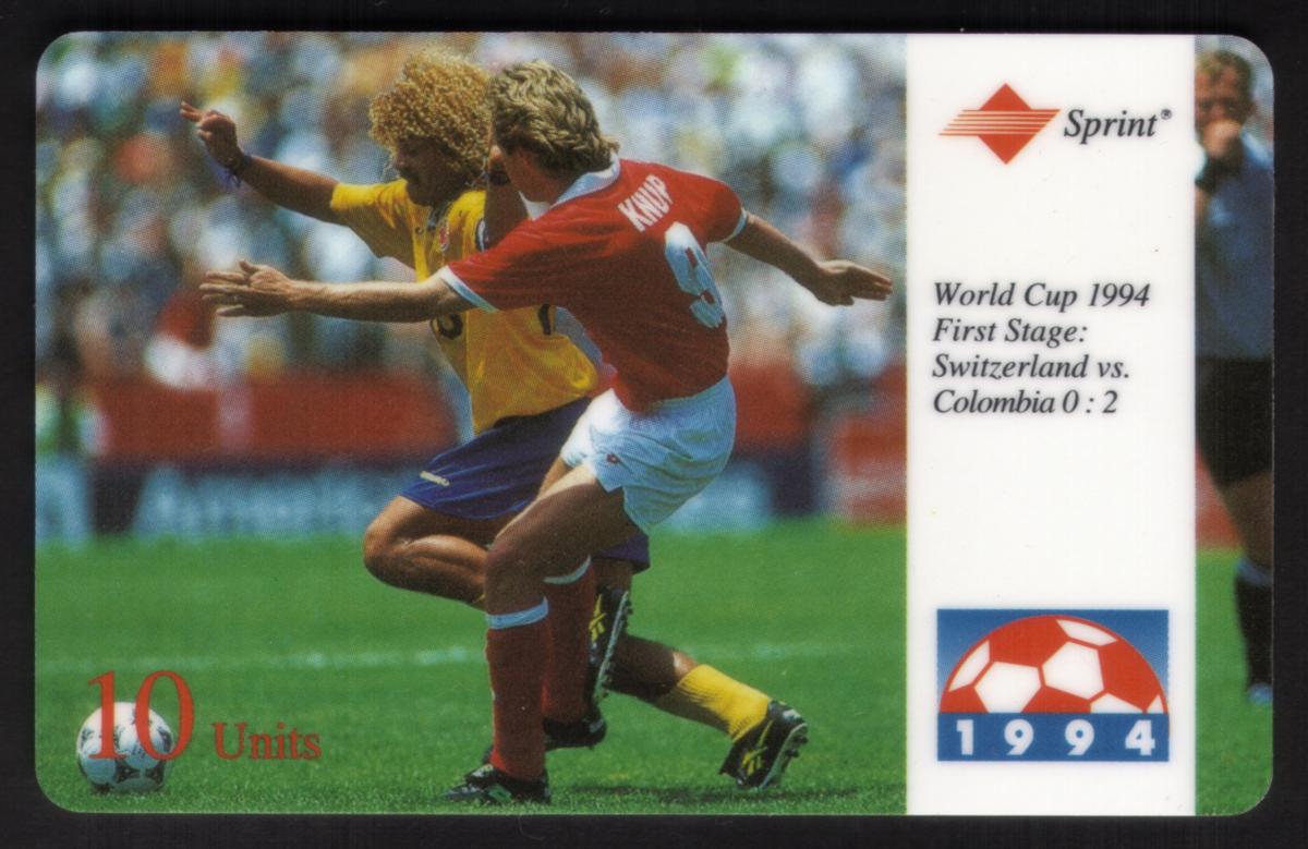 Overall, this collectible card is a commemorative piece celebrating the international soccer event featuring the matchup between Switzerland and Colombia during the World Cup USA 1994. It accurately portrays logos, players, and textual information confirming its connection to the global tournament and the sports category soccer, known internationally as futbol.