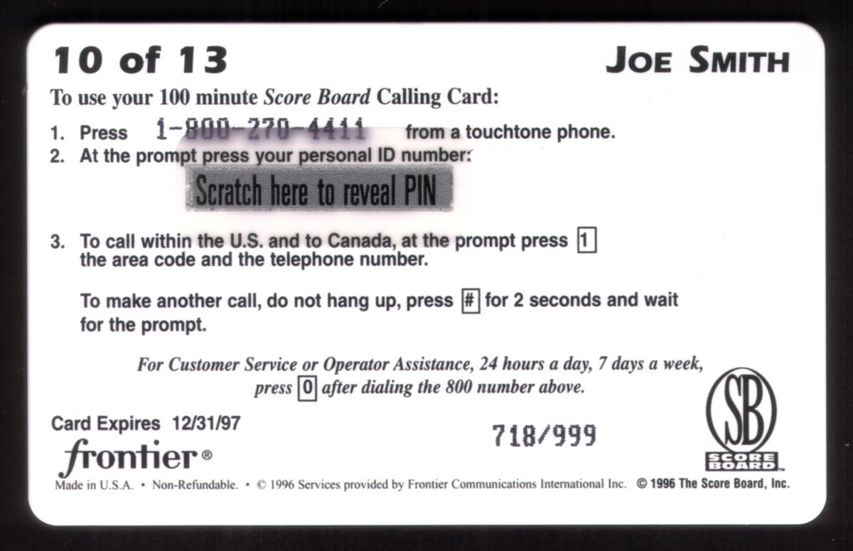 Since we have the world's largest inventory of USA phonecards for collectors, you will not necessarily receive the identical serial/batch/PIN number that we have scanned/pictured.