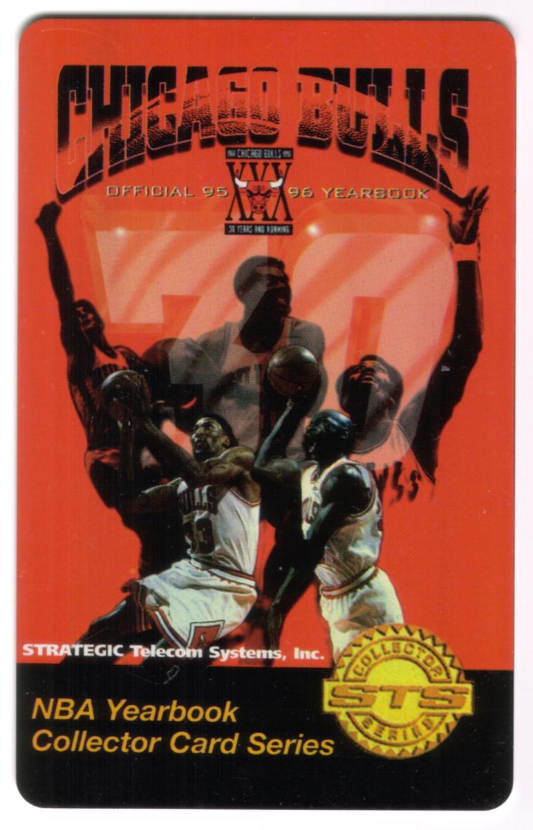 This phone card commemorates the Chicago Bulls’ historic 1995-1996 NBA season, featuring one of basketball’s most iconic figures, Michael Jordan. It serves as both a collectible item for fans and a promotional piece tied to the Bulls’ championship success under Strategic Telecom Systems.
